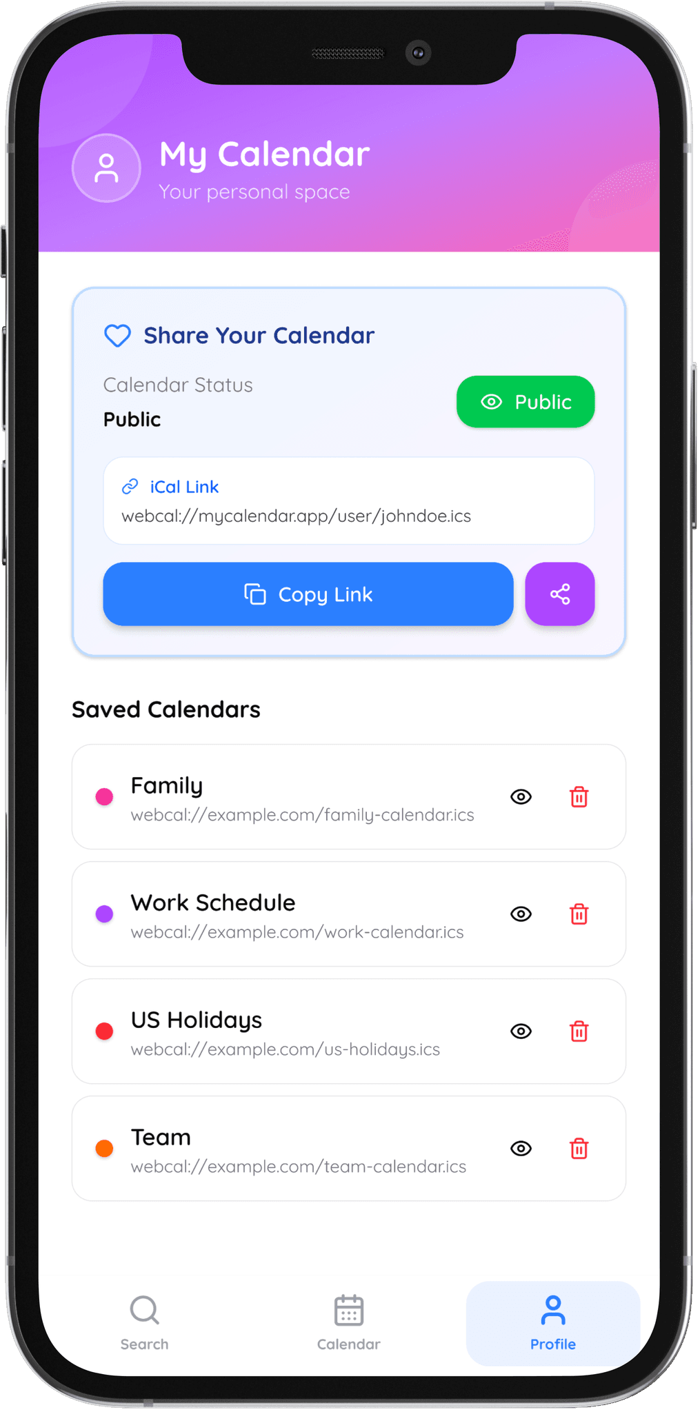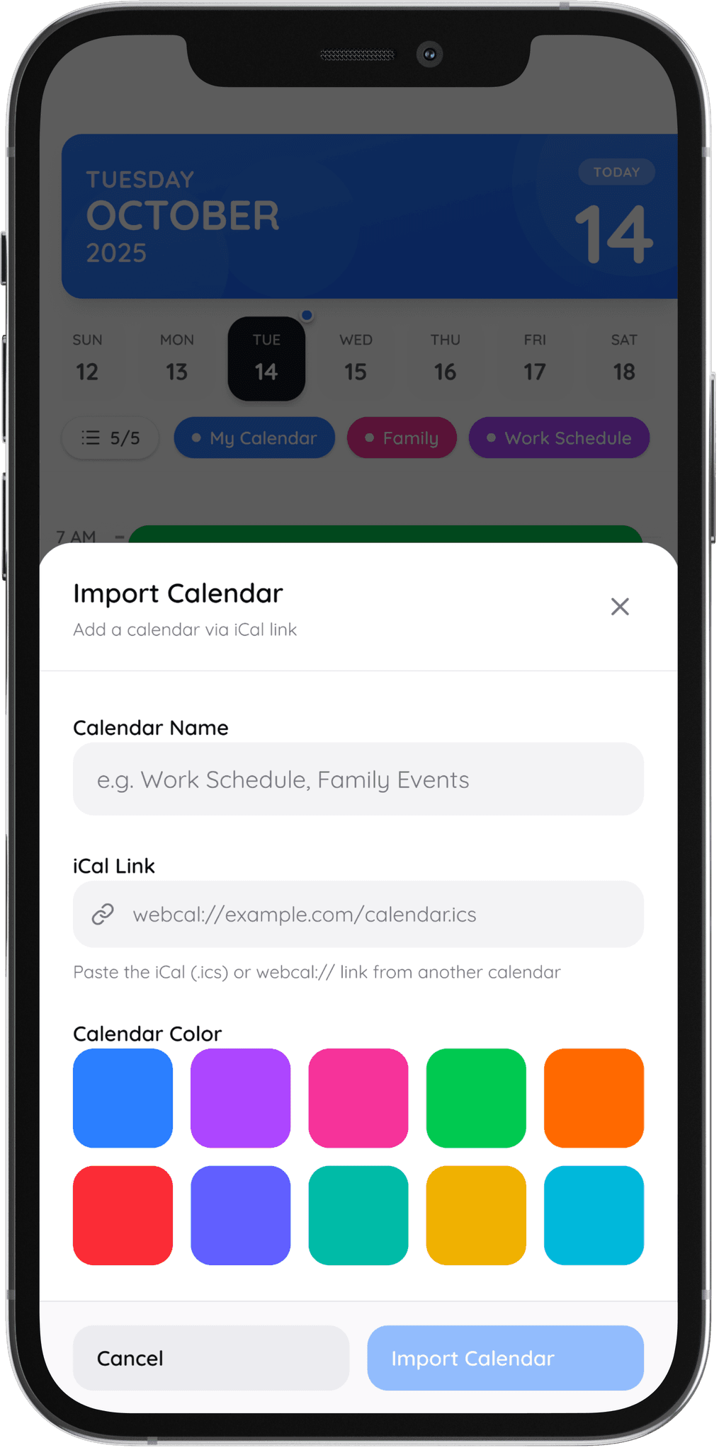 Modern calendar apps are effective at showing personal events, but they become difficult to manage once users need to interact with shared schedules, discover new calendars, or reuse existing plans. Browsing events, coordinating with others, or pulling in outside schedules often requires switching tools or manually recreating information, adding friction to something meant to feel simple.