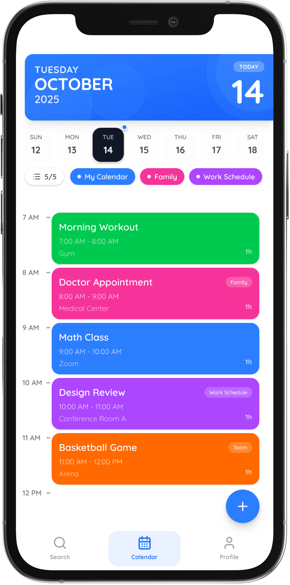 Personalize events with categories, icons, and colors that fit your schedule.